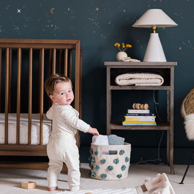 A dreamy assortment of baby clothing and nursery essentials inspired by twinkling night skies. Crafted from soft, breathable fabrics and finished with thoughtful, hand-drawn details, each piece brings comfort and gentle style to your little one’s world. From starry baby apparel to cosmic-themed nursery accents, this collection adds a touch of magic to every moment. Mix and match your favorites to create a beautifully coordinated wardrobe and nursery that feel soothing day and night.