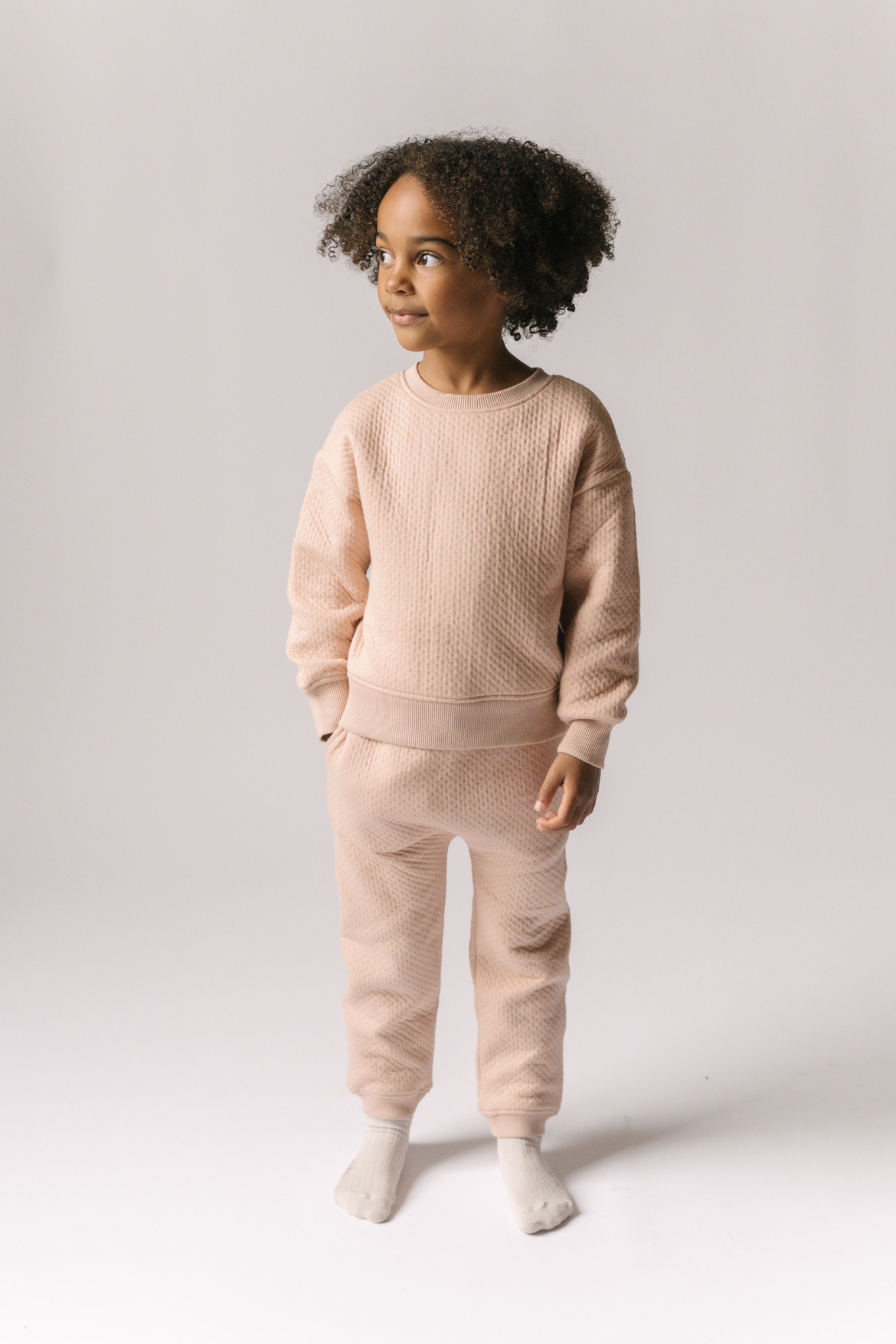 An everyday essential with a cloud-soft touch. The Cloud Sweatshirt is designed with a relaxed fit for easy layering and all-day comfort. Featuring a cozy dropped shoulder, stretch ribbed trim and a plush quilted texture, it’s the piece they’ll reach for again and again all season long. Pehr with our Cloud pants for a cute matching set.