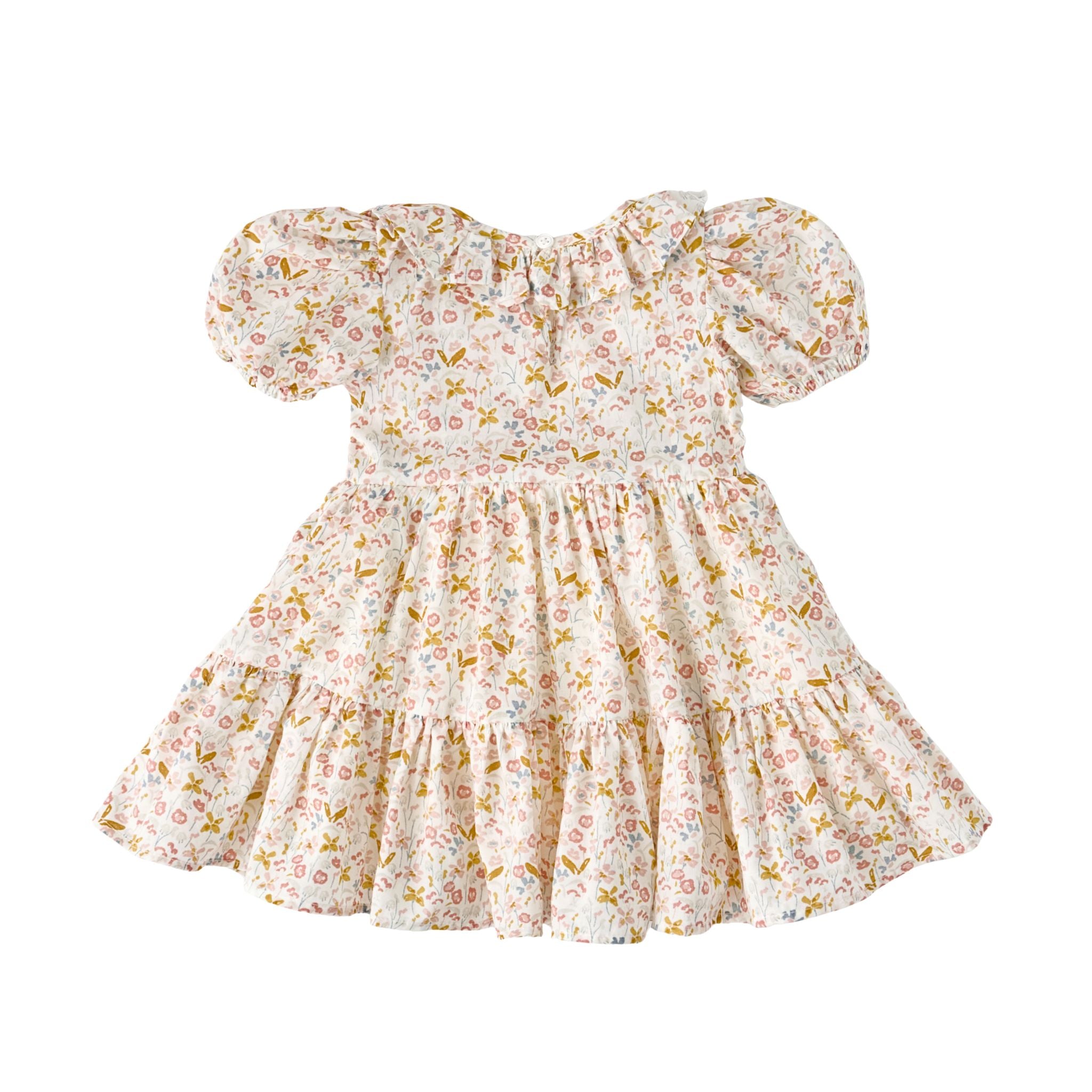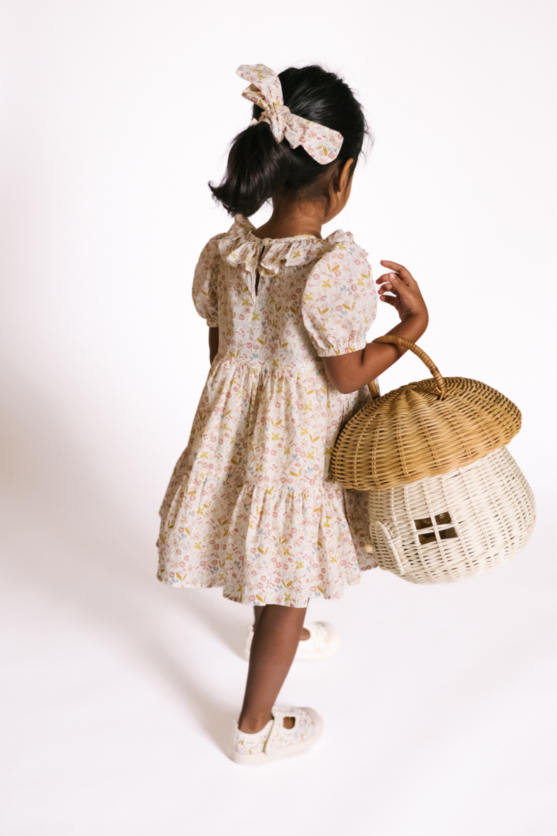 A billowy tiered silhouette with a fully lined skirt allows for easy movement, while the hand-drawn Floret print adds a sweet, meadow-inspired touch. Finished with a keyhole button closure for easy dressing, it’s perfect for everyday wear, special moments, and everything in between. Designed to mix and match with coordinating pieces from the Floret collection for an effortlessly styled look.