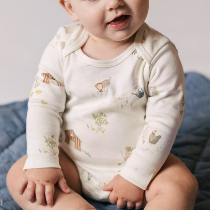 A thoughtful lap-shoulder neckline makes dressing smoother, stretchier and perfectly fuss-free for you and baby.