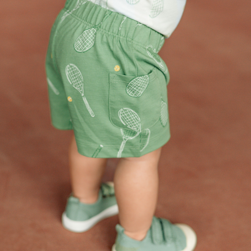 A perfect match for play! Our Tennis Short is made from GOTS-certified 100% organic cotton jersey that’s lightweight, breathable, and garment-washed for a super soft feel. Designed with a relaxed fit, elastic waist band, side pockets and an adjustable drawstring on toddler sizes (18 mos. +), they’re perfect for all-day movement. 'Pehr' them with our Tees, Bucket Hats and Sandals for a ready-for-anything summer outfit.