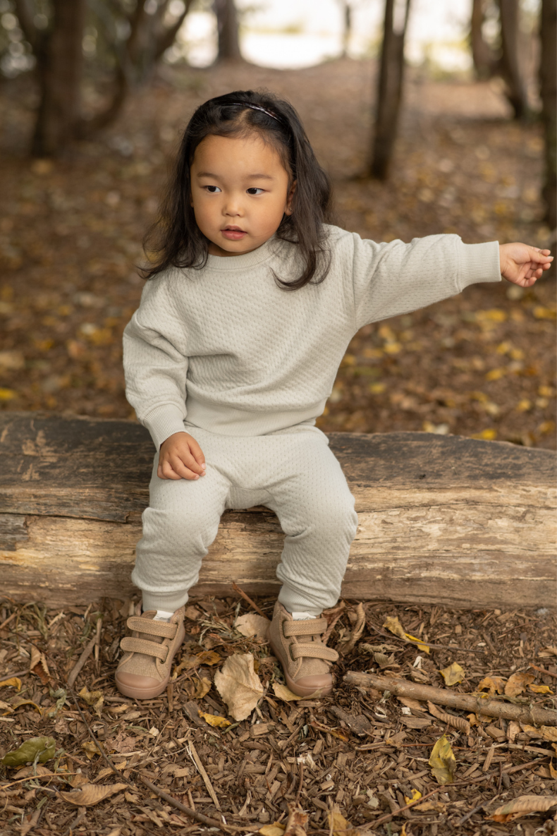An everyday essential with a cloud-soft touch. The Cloud Sweatshirt is designed with a relaxed fit for easy layering and all-day comfort. Featuring a cozy dropped shoulder, stretch ribbed trim and a plush quilted texture, it’s the piece they’ll reach for again and again all season long. Pehr with our Cloud pants for a cute matching set.