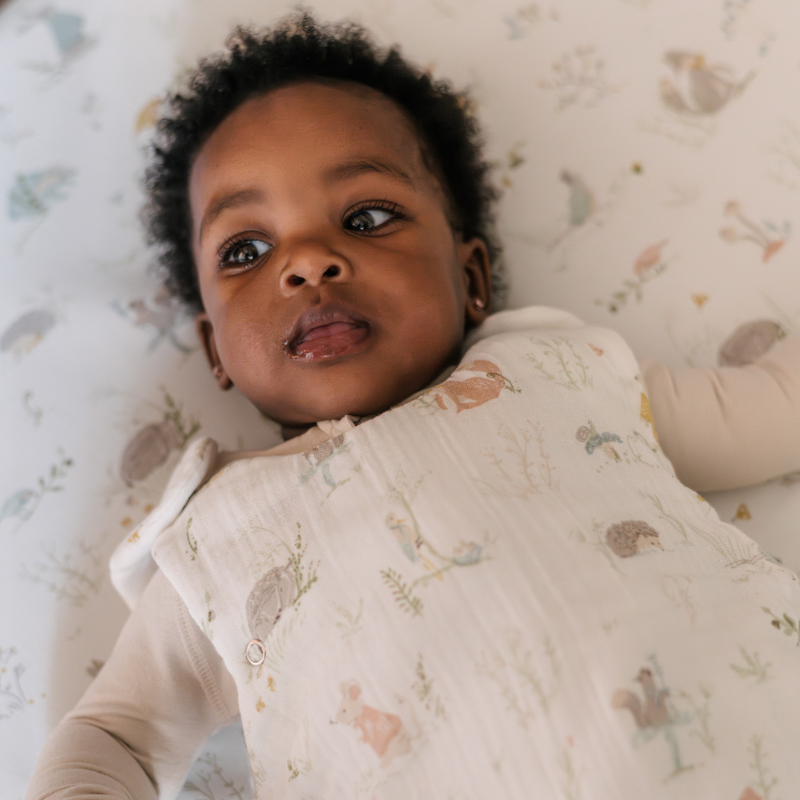 Made for warmer temperatures and peaceful nights, our 1.0 TOG Sleep Bag—also known as a sleep sack—is crafted from two layers of GOTS certified organic muslin cotton for lightweight breathability and softness. Designed for room temperatures of 75–81°F (24–27°C), it features a side-to-bottom zipper for easy diaper changes and underarm snaps on sizes 0–9 months to ensure the perfect fit as your baby grows.