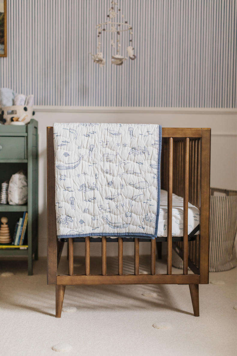 Wrap your little one in everyday comfort with our Chambray Blanket—an heirloom-worthy essential crafted with the softest 100% cotton and thoughtfully hand-finished details. Each blanket is screen printed by hand using AZO-free dyes, making every piece as unique as your little. With a charming print on one side and coordinating chambray on the other, it’s designed for cozy cuddles, quiet moments, and years of love. A lightweight, hypoallergenic polyfill interior adds gentle warmth without bulk. Make this a perfect gift set with the matching Swaddle & Crib Sheet!