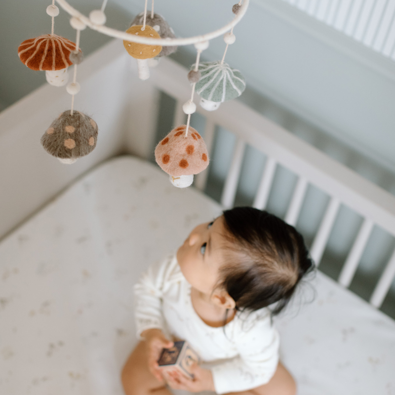 Add a touch of charm to your little one’s nursery with our Classic Mobile, a beautifully handmade wool baby mobile crafted with soft, AZO-free dyes. Each piece is a unique work of art, adding gentle character and thoughtful design to your nursery décor. Gift-ready and lovingly made, this timeless baby mobile brings personality and warmth to any space. Complete your nursery with the matching crib sheet and play mat.