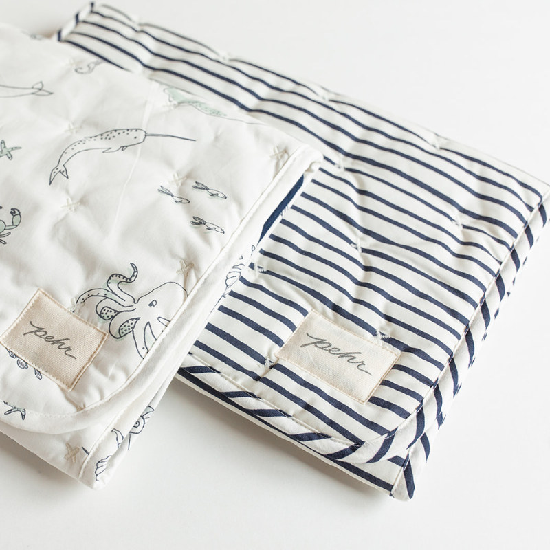 Pehr-Striped On the Go Portable Changing Pad-Stripes Away Deep Sea-1