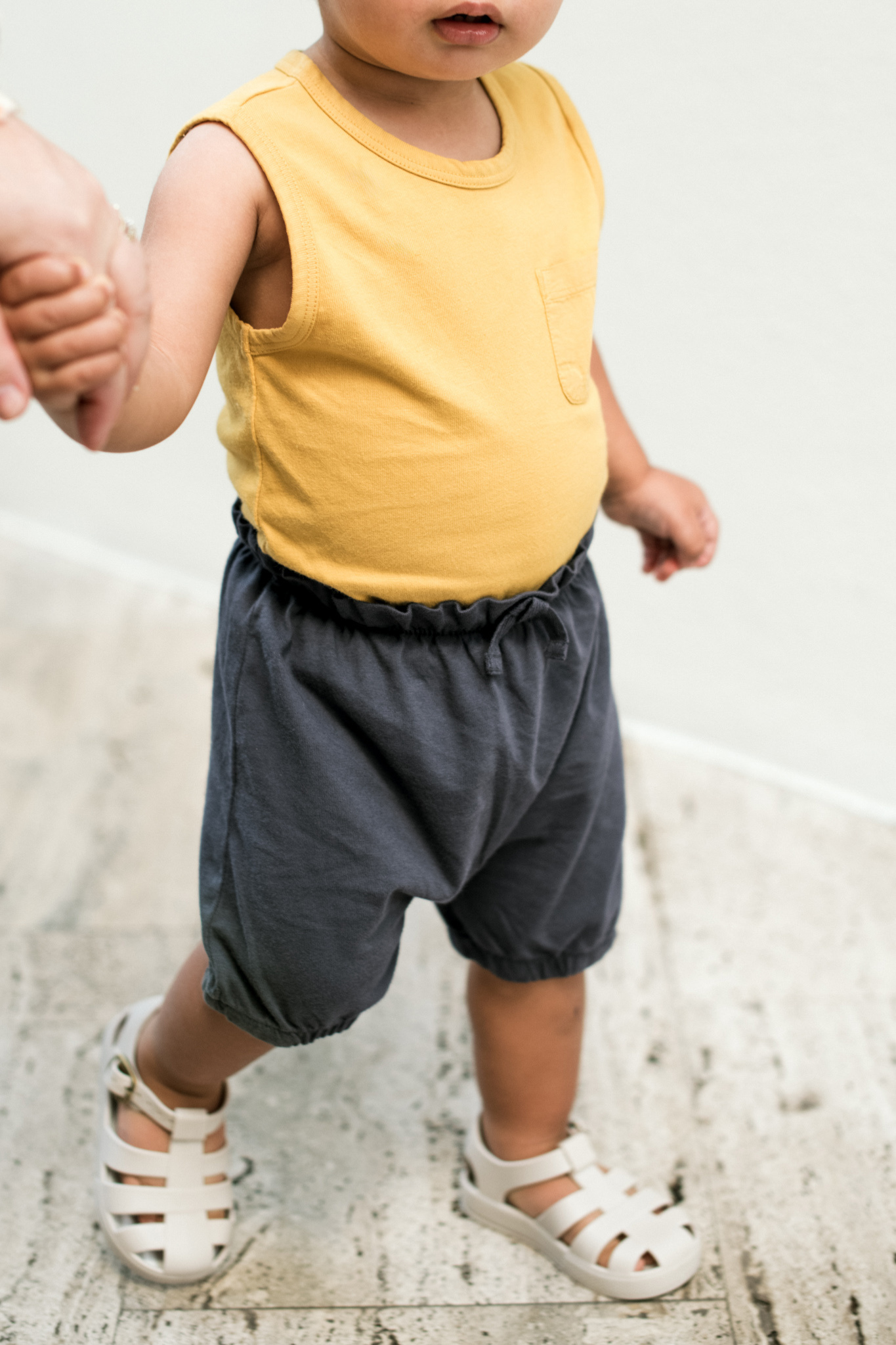 Easy to wear, endlessly versatile. Our Garment Dye Bloomer is made for summer play. Crafted from 100% organic cotton and non-toxic dyes, each piece is one-of-a-kind, with a soft vintage look and feel thanks to our unique garment-dyeing process. It’s designed with elastic at the waist and legs for an easy, breezy fit that keeps little ones comfy all day long. Pair it with our garment dye one-piece and Bucket Hat to complete the look.