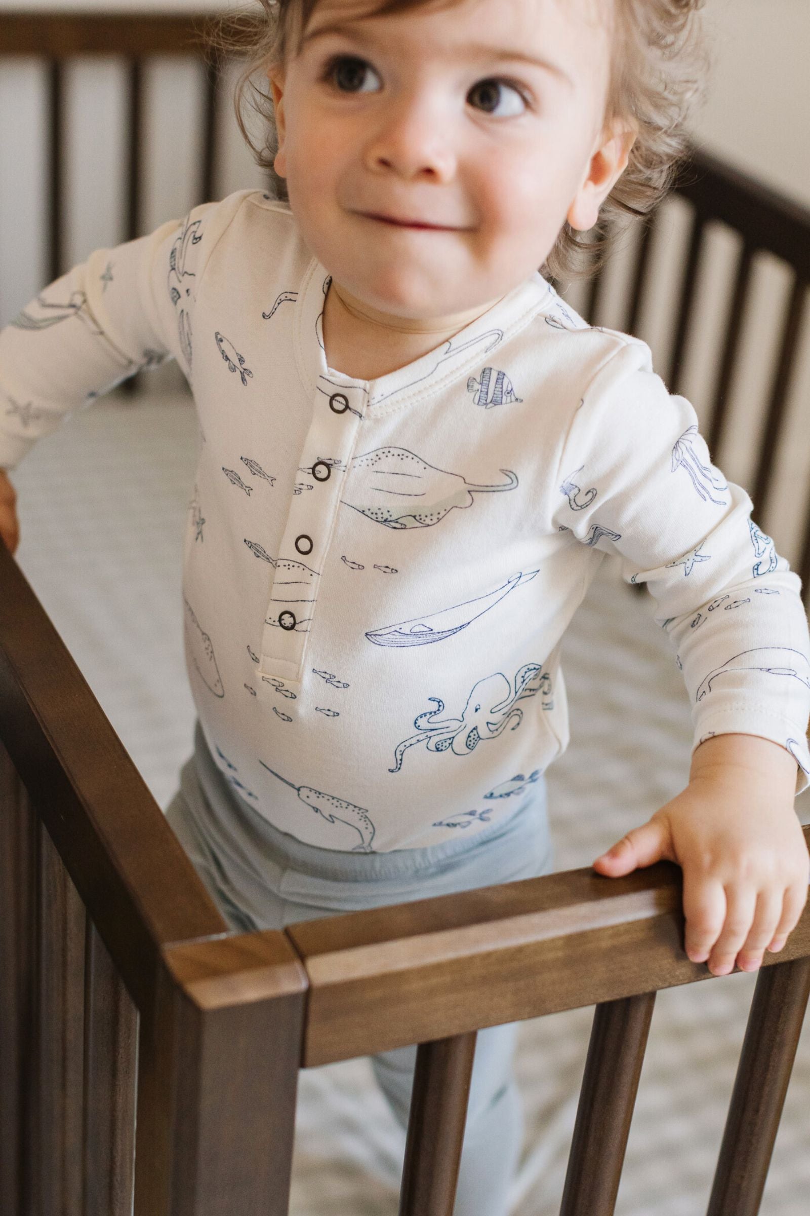 Crafted in our signature organic cotton, each piece is soft, breathable, and gentle on baby and toddler’s skin.