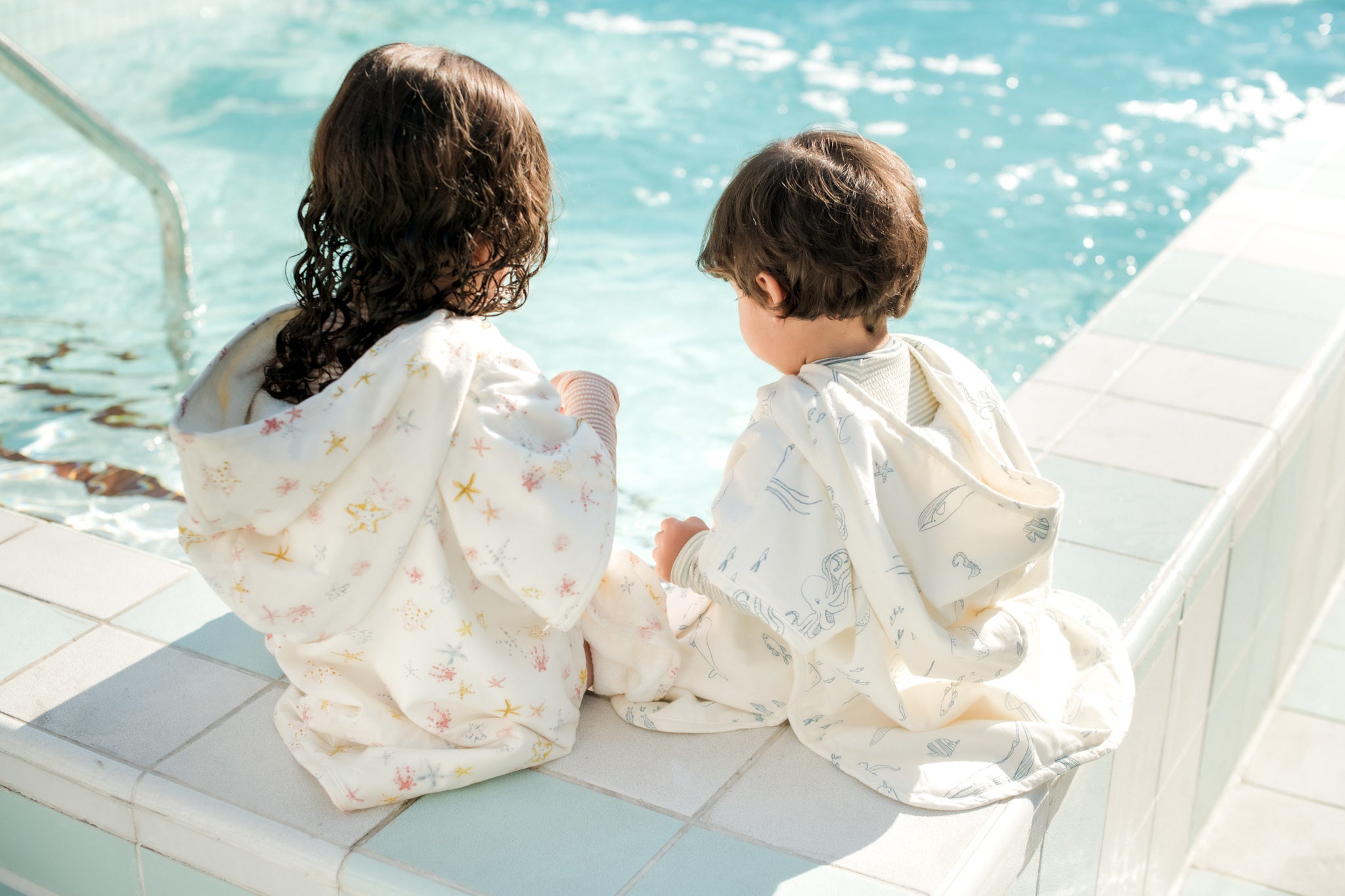 Wrap them in effortless comfort from bath time to beach days with our Hooded Poncho Towel, featuring Pehr’s most-loved prints. Crafted with soft, brushed cotton on the outside and ultra-absorbent terry on the inside, it keeps little ones cozy while making post-water transitions a breeze. Hand-screen-printed with AZO-Free dyes and finished with our signature kangaroo pocket, it’s a go-to essential they’ll want to wear again and again. Pehr it with a Bucket Hat and Swimwear for a perfectly coordinated, sun-ready look.