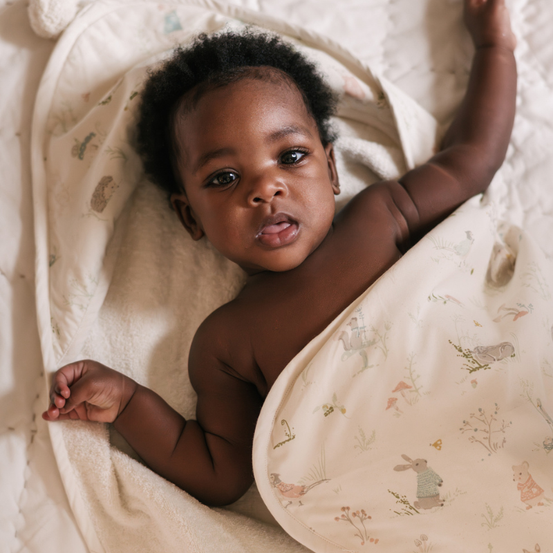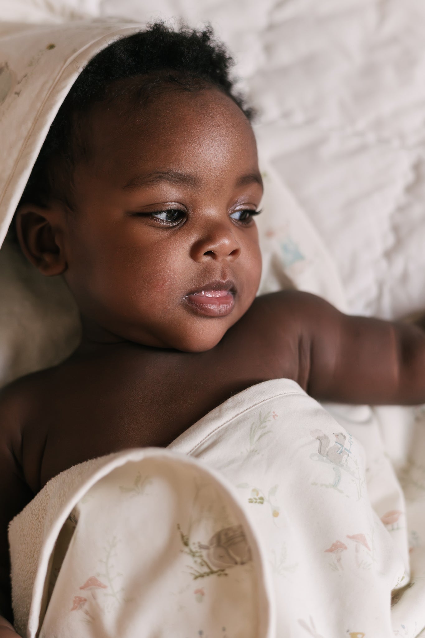 Crafted with brushed cotton and absorbent French terry, it wraps your baby in cozy comfort after every splash.