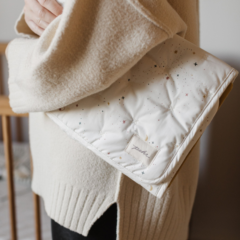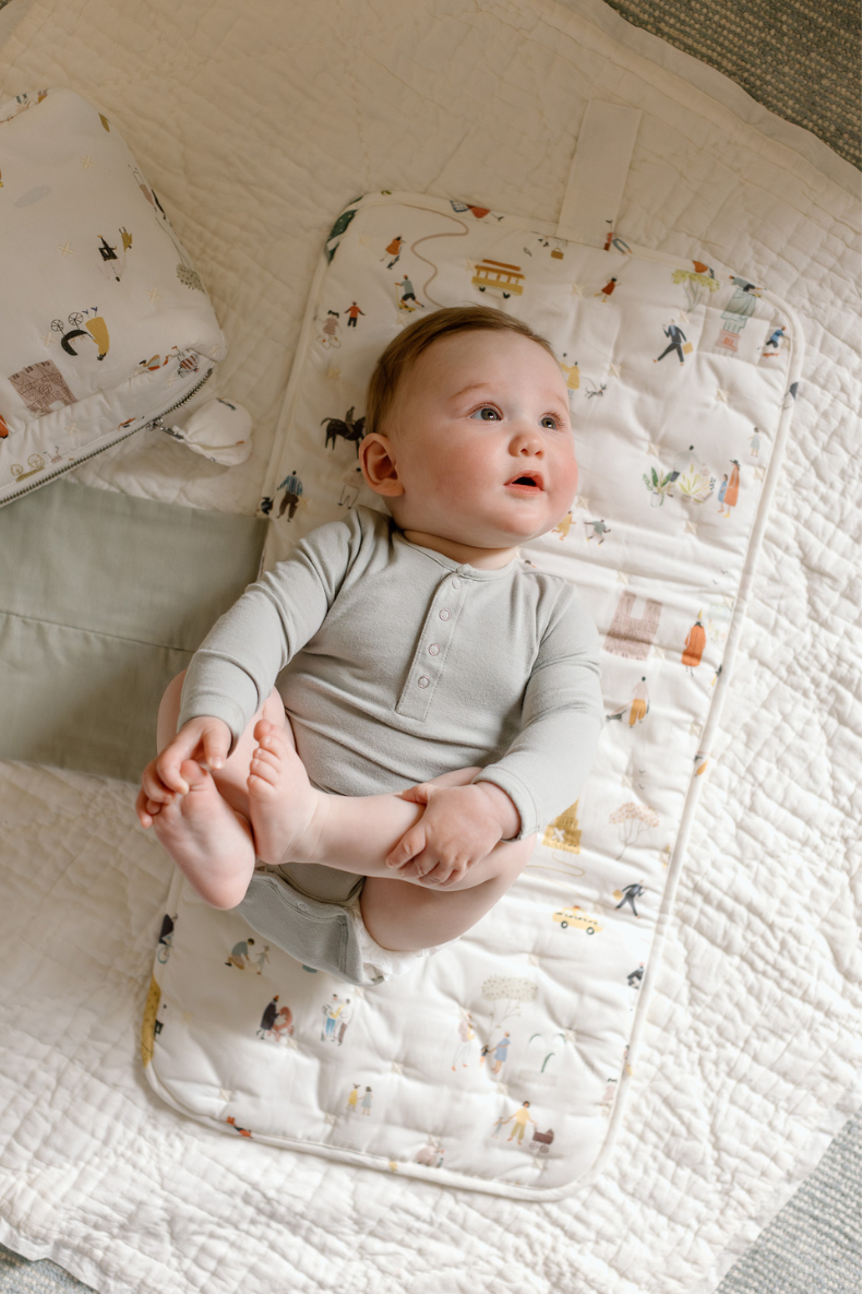 Make every diaper change a breeze — wherever you are. Thoughtfully designed for parents on the move, our On The Go Changing Pad combines functionality, comfort, and sustainability. It folds up neatly into a stylish clutch, making it the perfect grab-and-go essential for any outing.