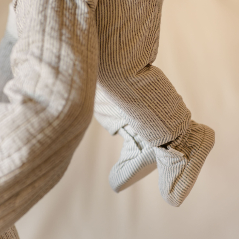 Made for little explorers, our Overall & Bootie Set is a ready-to-wear bundle that’s both sweet and practical! The soft pull-up overalls are designed for all-day play with room to move, while the matching booties keep tiny toes cozy and secure. Crafted from organic materials, this set is easy, comfy, and perfect for layering over your favorite one-piece.