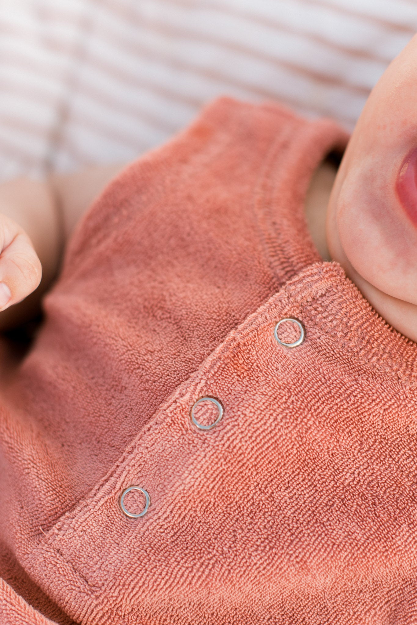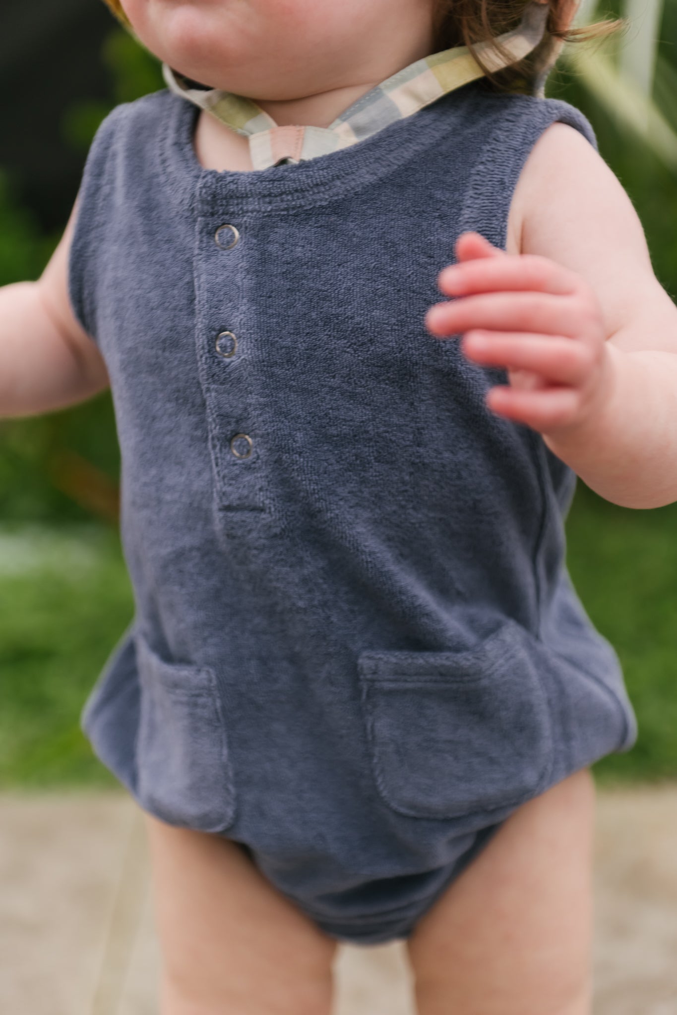 Made for sunshine and play! The Pocket One-Piece is crafted from GOTS certified organic cotton towel terry. With a sleeveless, billowy silhouette, two patch pockets, and easy snaps at the front and bottom, it's the perfect everyday summer piece. Pehr with our Bucket Hat and Splash Sandal to complete the look.