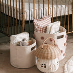 Tidy away books, trains and craft supplies. Great for your little one's treasures or as a catch all for the family. With each Pom Pom sewn by hand, our Pom Pom Bin is parent approved and a fan favorite.