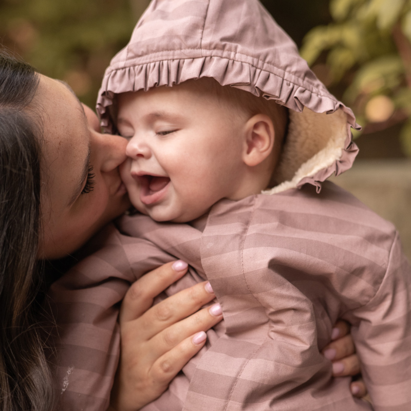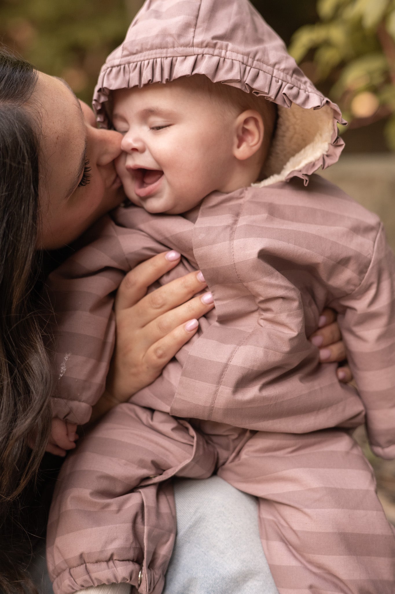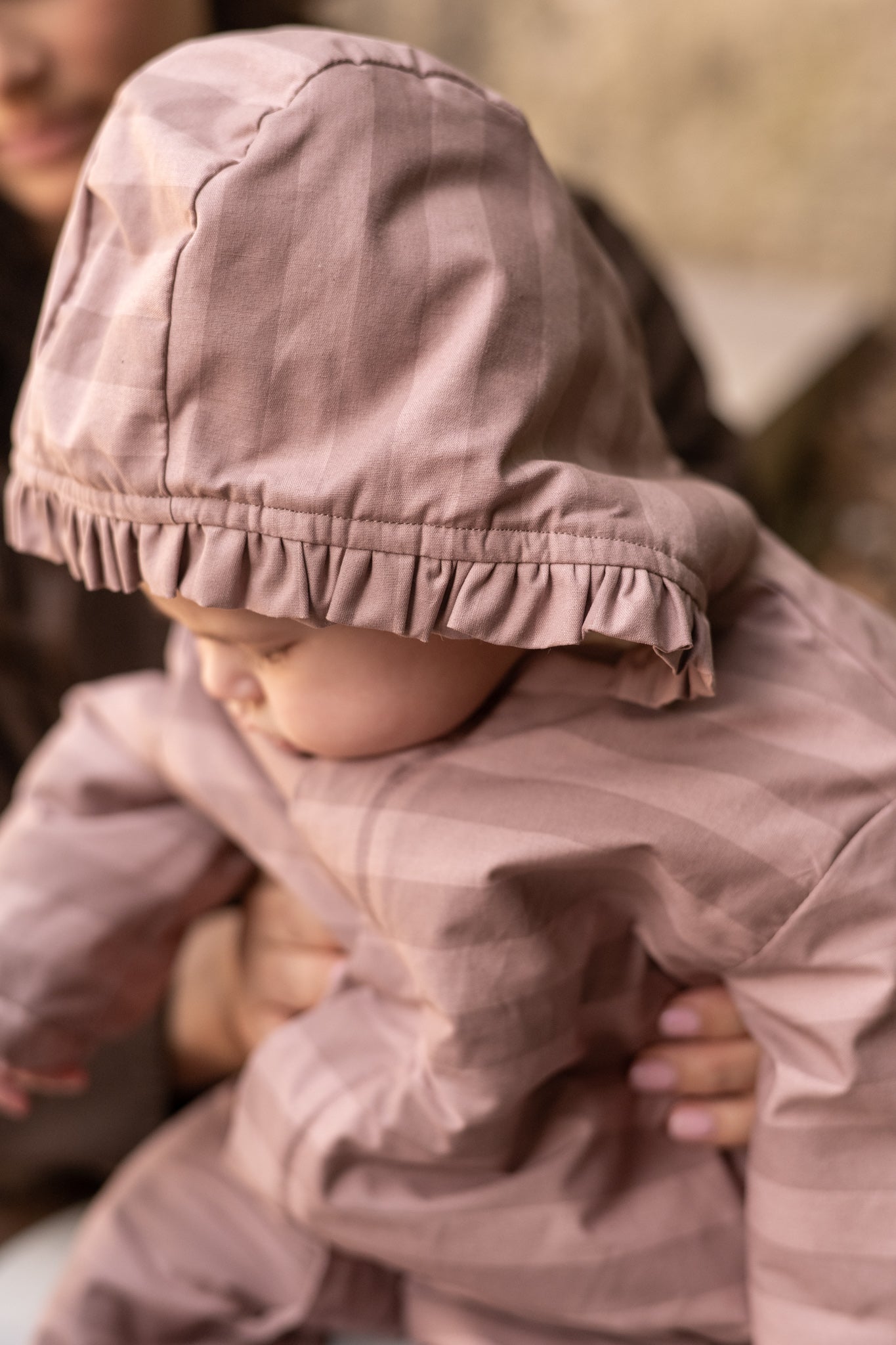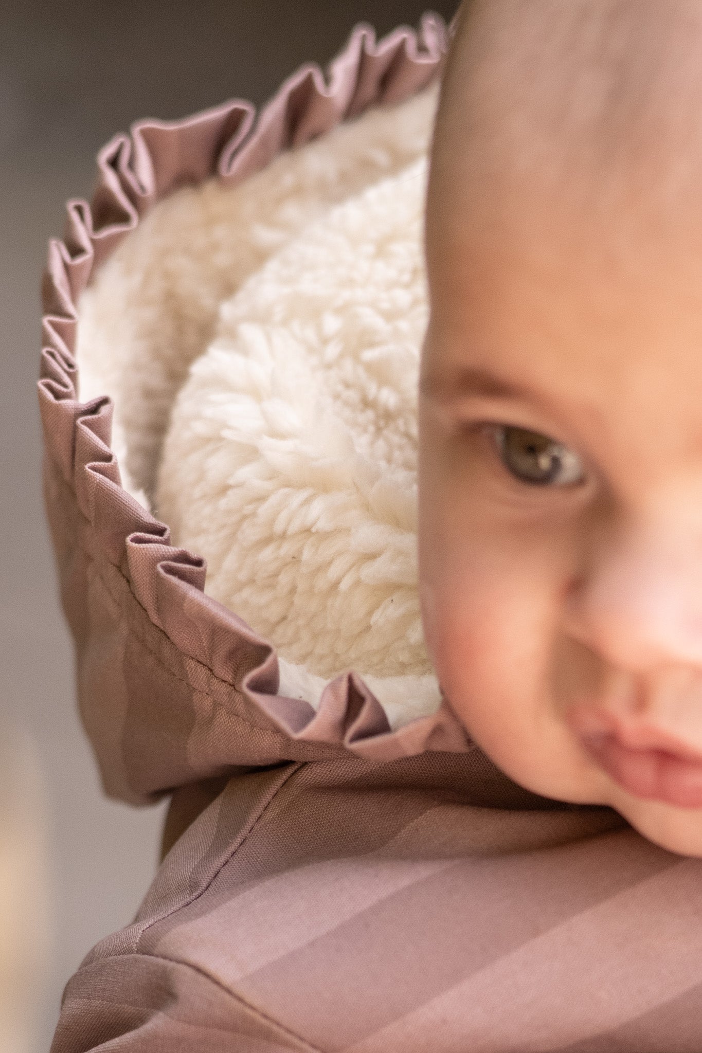 Wrap your little one in cozy comfort with our Sherpa Lined Storm Splash Suit with Ruffles. Made with a water-repellent, non-toxic coated shell and fully lined with soft sherpa, it offers the perfect balance of warmth and practicality. Delicate ruffles frame the hood for a sweet touch, while elasticized cuffs and a removable zipper with hidden snaps make it easy to dress and keep snug. Finished with an interior name tag, it’s as thoughtful as it is adorable. Pehr with our Pathfinder boots for a splash safe look.