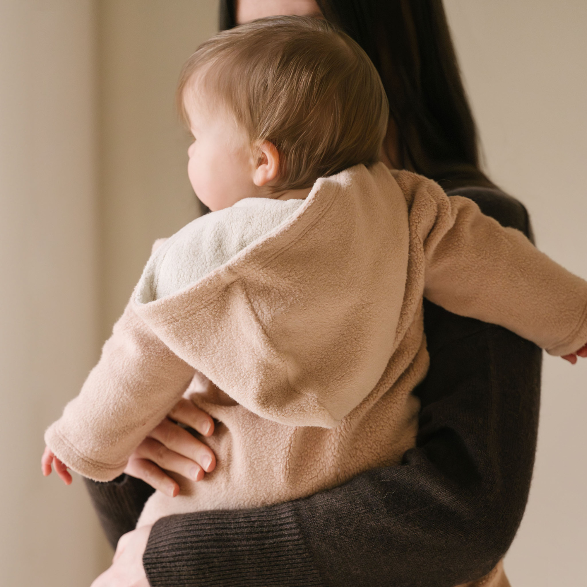 Where Teddy Fleece meets outerwear. Made from 100% GOTS-certified organic cotton, our too-cute Baby Suit keeps your little one cozy from stroller walks to their very first outdoor adventures. Designed with an oversized hood for extra warmth and a soft jersey-lined interior, it’s finished with a front patch pocket and a full zip for easy changes. Pehrs well with our One-Pieces or Wool Knit Accessories for the ultimate cozy combo.
