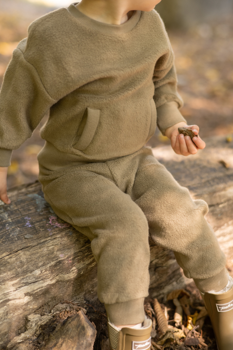 The Teddy Fleece Dropped Shoulder Sweatshirt is the ultimate cozy layer for cooler days. Crafted from 100% GOTS Organic Cotton fleece, this unisex style features a relaxed fit for easy layering and everyday comfort. With a front kangaroo pocket, ribbed trim, and dropped shoulder detail, it’s as classic as it is comfy — designed in three versatile colors to mix and match effortlessly. Pehrs well with our Teddy Fleece Jogger and Pathfinder Boots for the ultimate cozy combo.