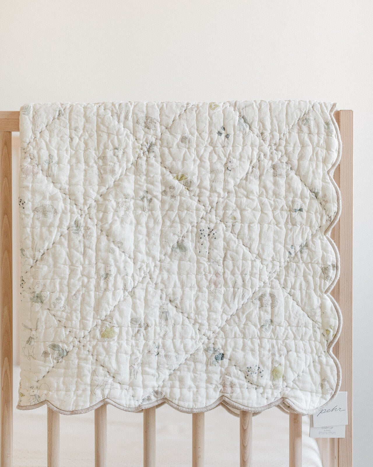 - Hand quilt stitching throughout body of blanket in Ivory