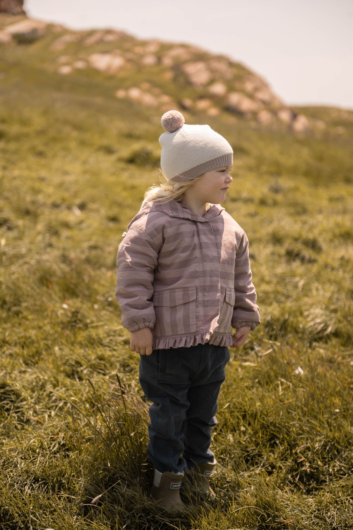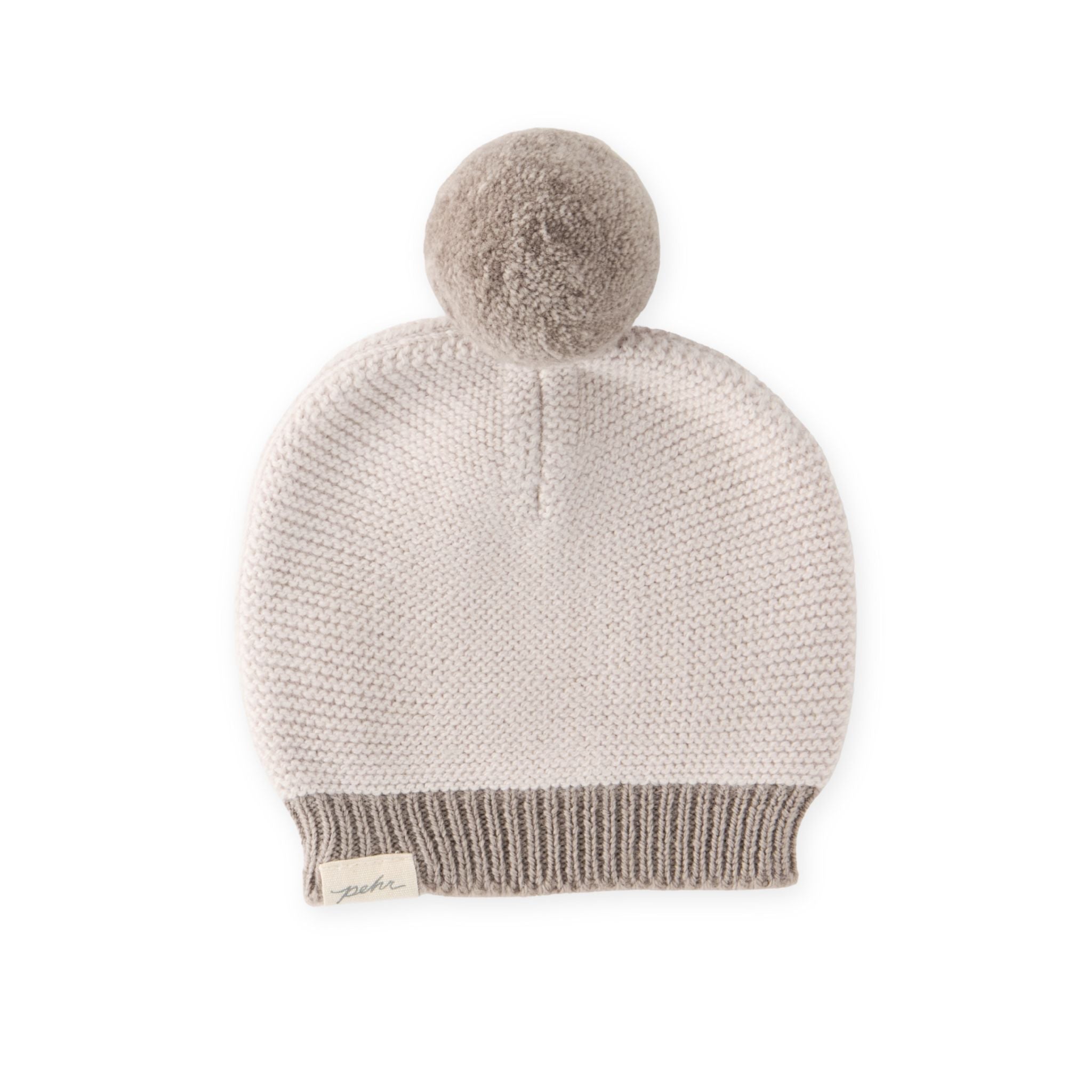 Finished with a contrast rib hem and a sweet pom pom top for a touch of whimsy.